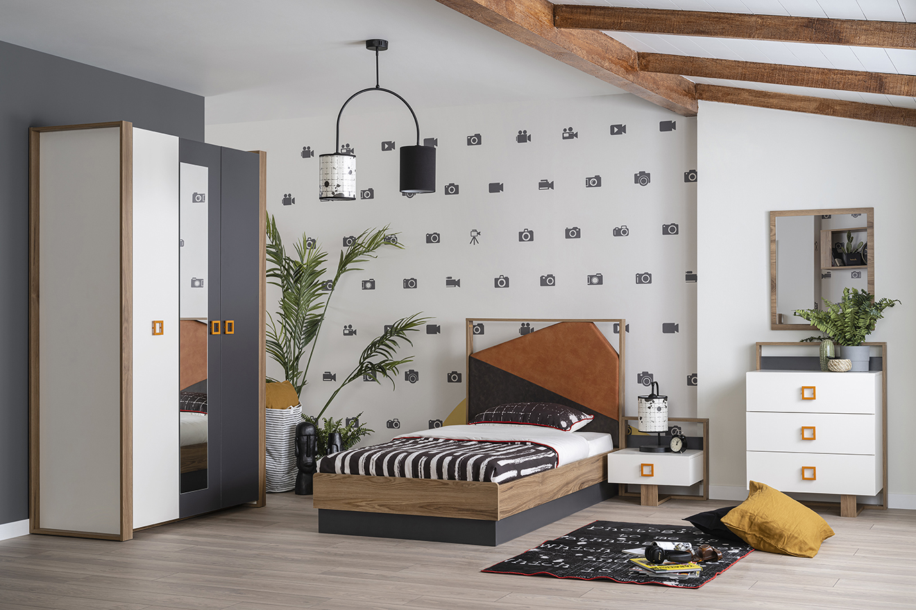 Das Jugendzimmer Set besteht aus: Bett 100×200 cm,Kleiderschrank, Nachtkasten