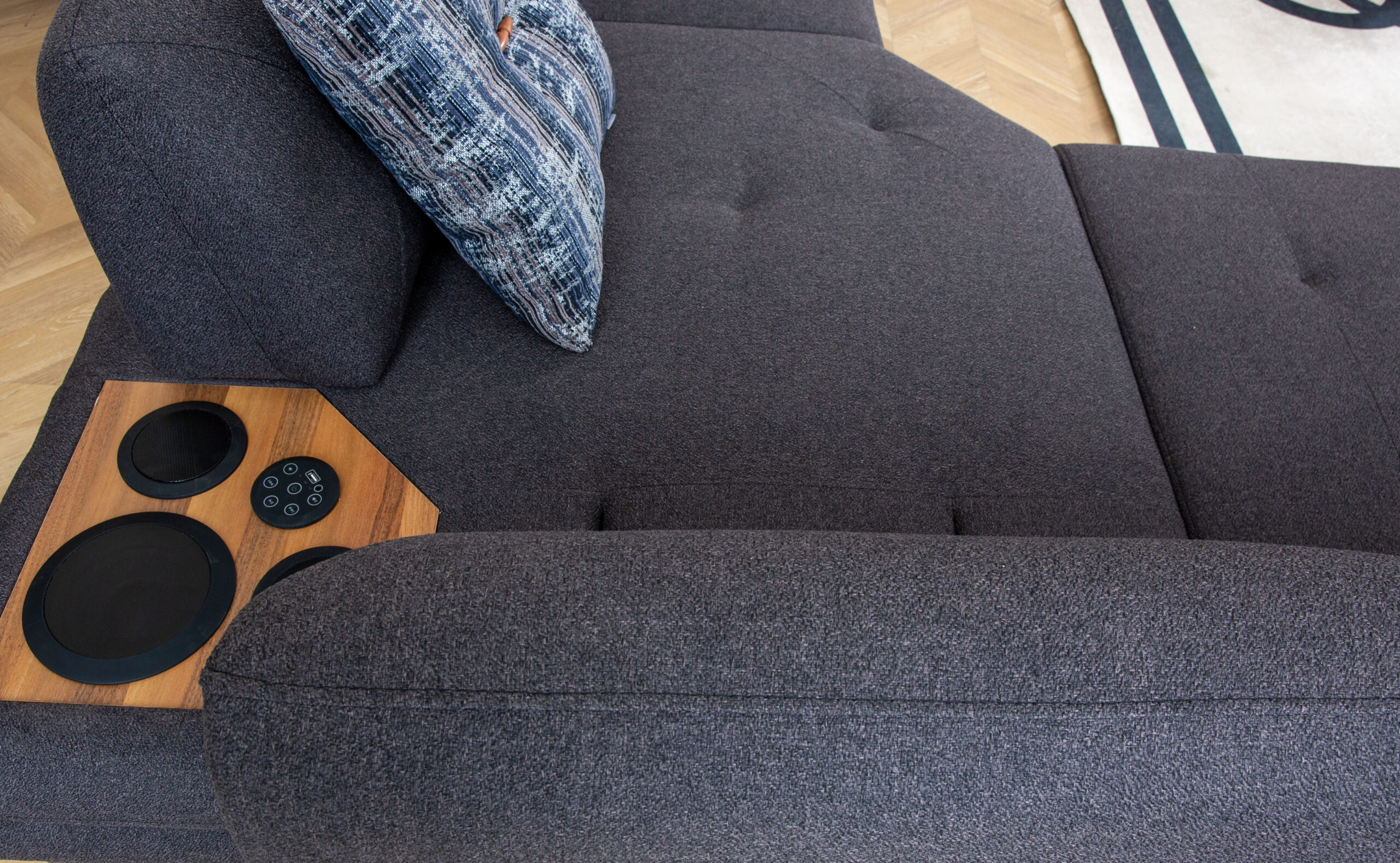 “Hinweis: Das Couchtisch-Modul und das Modul mit Fußstützen-Funktion sind nicht im Preis des Ecksofas enthalten.”