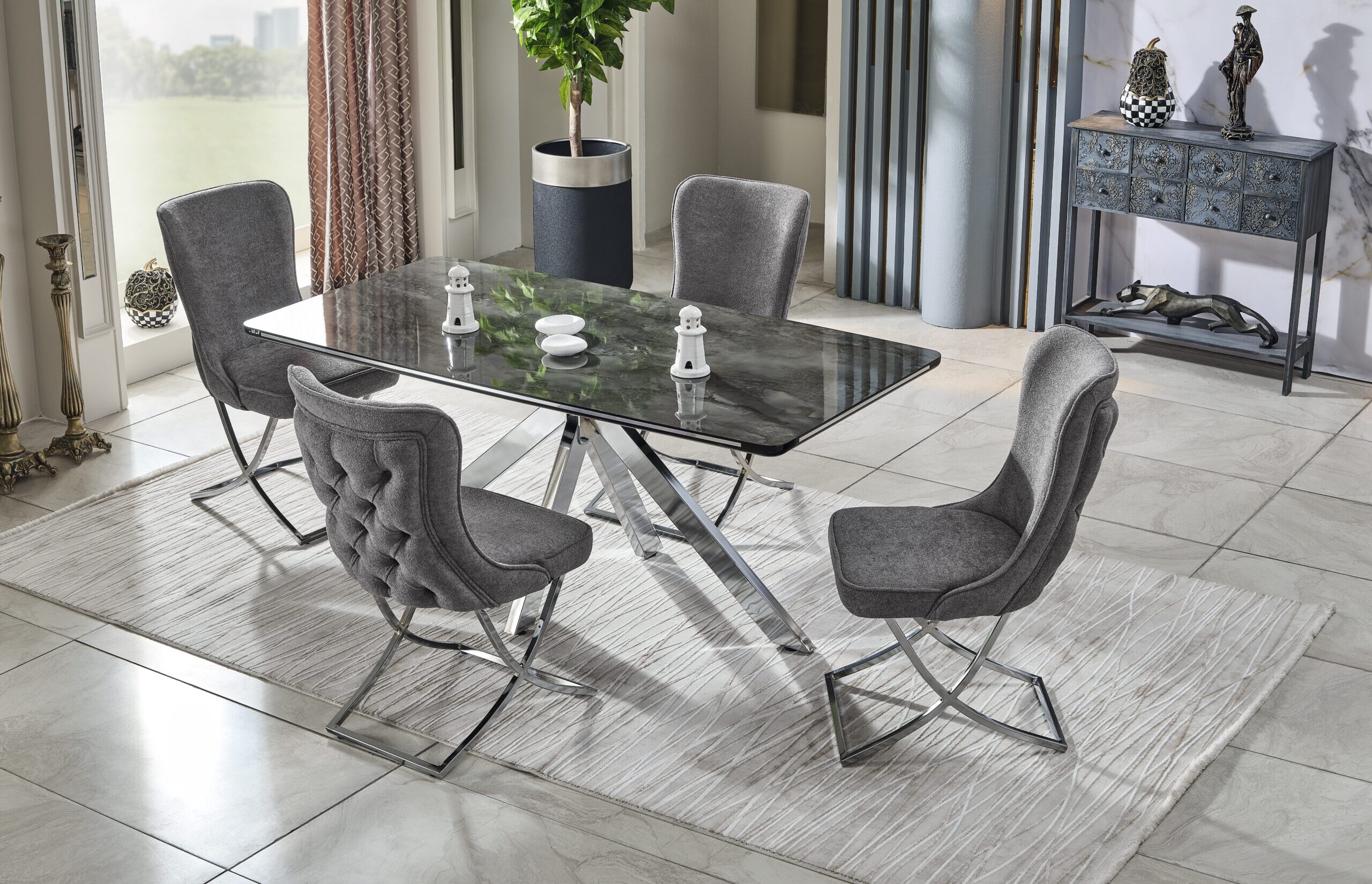 Möbel Haus Wien – Stilev Wien – Möbel Wien – Online Möbel Kaufen – Modern – Avantgarde – Klassische Esszimermöbel – Esstisch -Esszimmergarnitur – Karla Elite Esstisch mit 4 Stühlen
