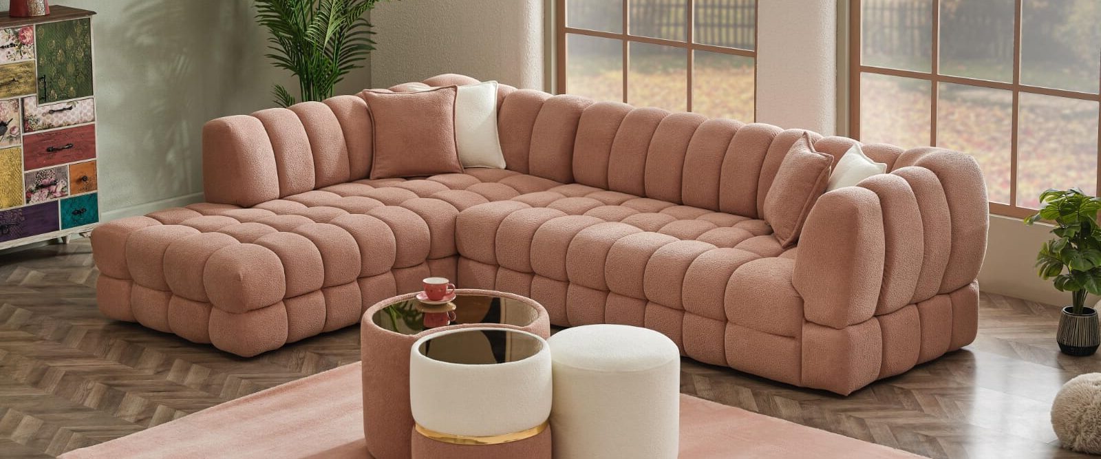 Puffy Ecksitzgruppe Dieses Modell wird in der Kombination – 3+Ecke+2 angeboten.