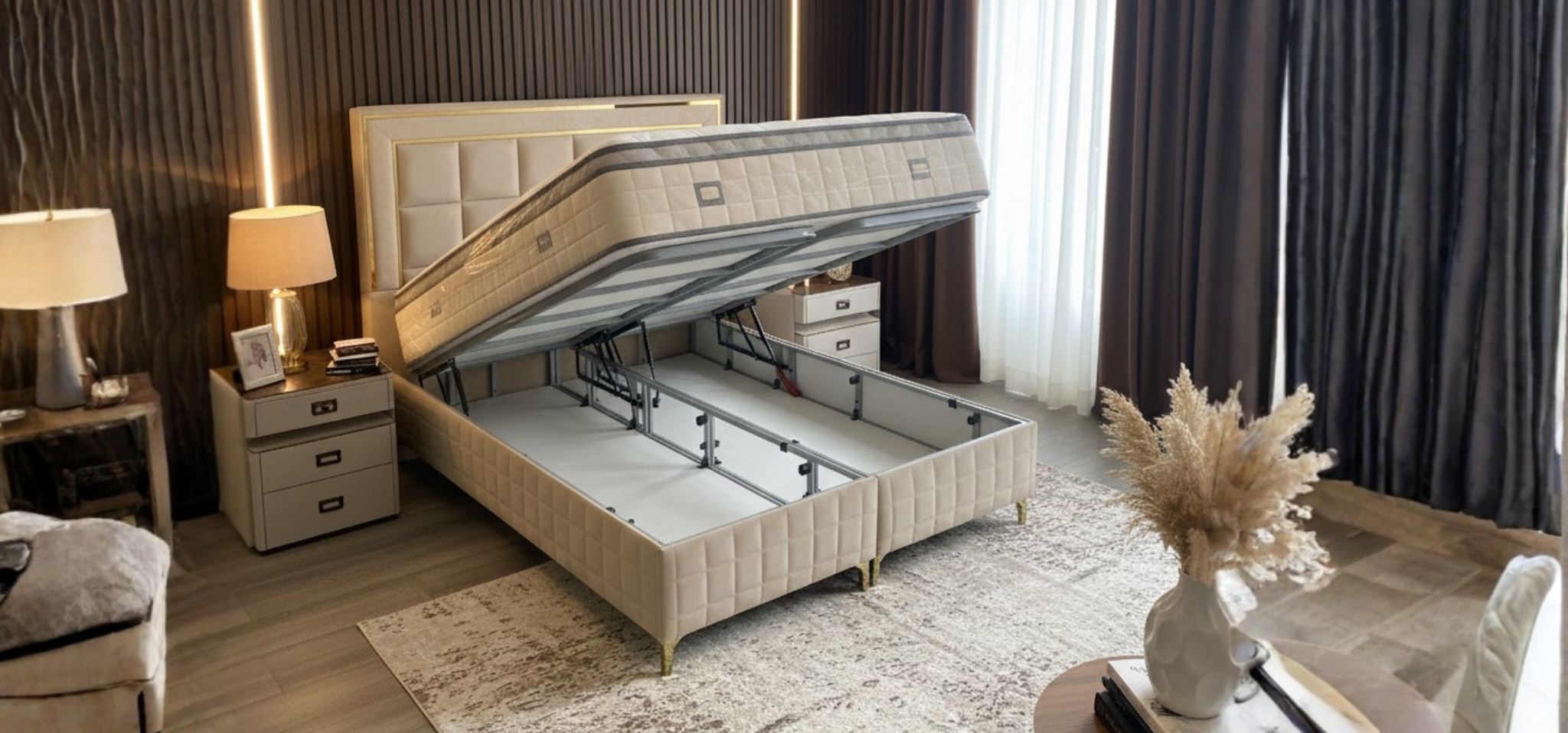 - Hydraulisches System um den Bettdeckel leicht zu öffnen und zu schließen